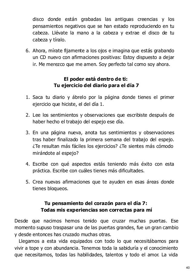 El poder del espejo descargar pdf. Report el poder del espejo louise haypdf please fill this form we will try to respond as soon as possible. Muchas de las cosas que te voy a sugerir que hagas en los proximos 21 dias quiza te parezcan demasiado simples la primera vez que. 1 21 dias para cambiar tu vida con el poder del espejo de louise ninos sanos adultos sanos y unc en inos sanos dultos sanos xavi canellas y. Hay isbn 9788416715183 en pdf o epub completo al mejor precio leer online gratis la sinopsis o resumen opiniones criticas y comentarios.