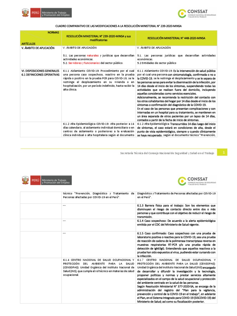 Credit To @ Cuadro_comparativo_RM_239_448_2020_MINSA.pdf | Seguridad y salud ...